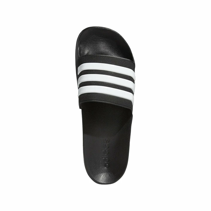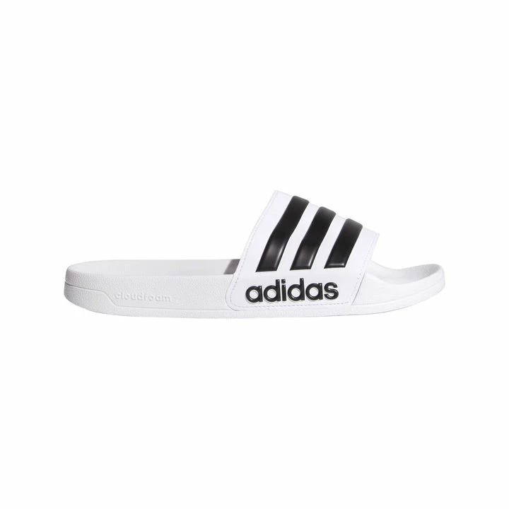 Shower-ready slides with a soft, contoured footbed. Slip on and go! These slides mix 3-Stripes style with a comfortable cloudfoam unitsole, which combines the midsole with the outsole for superior cushioning. Finished with a bold linear logo on the side.
